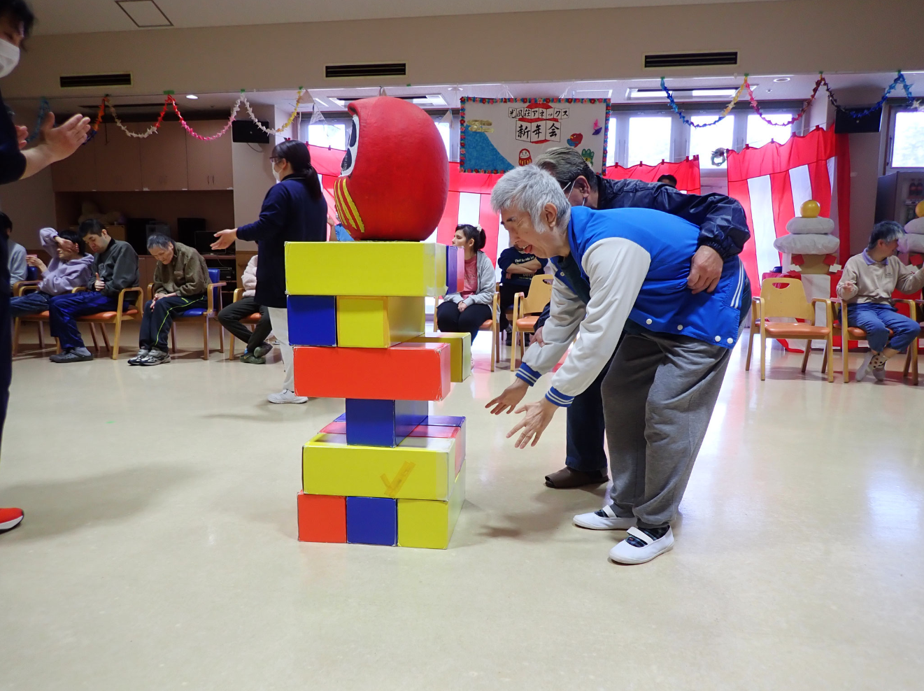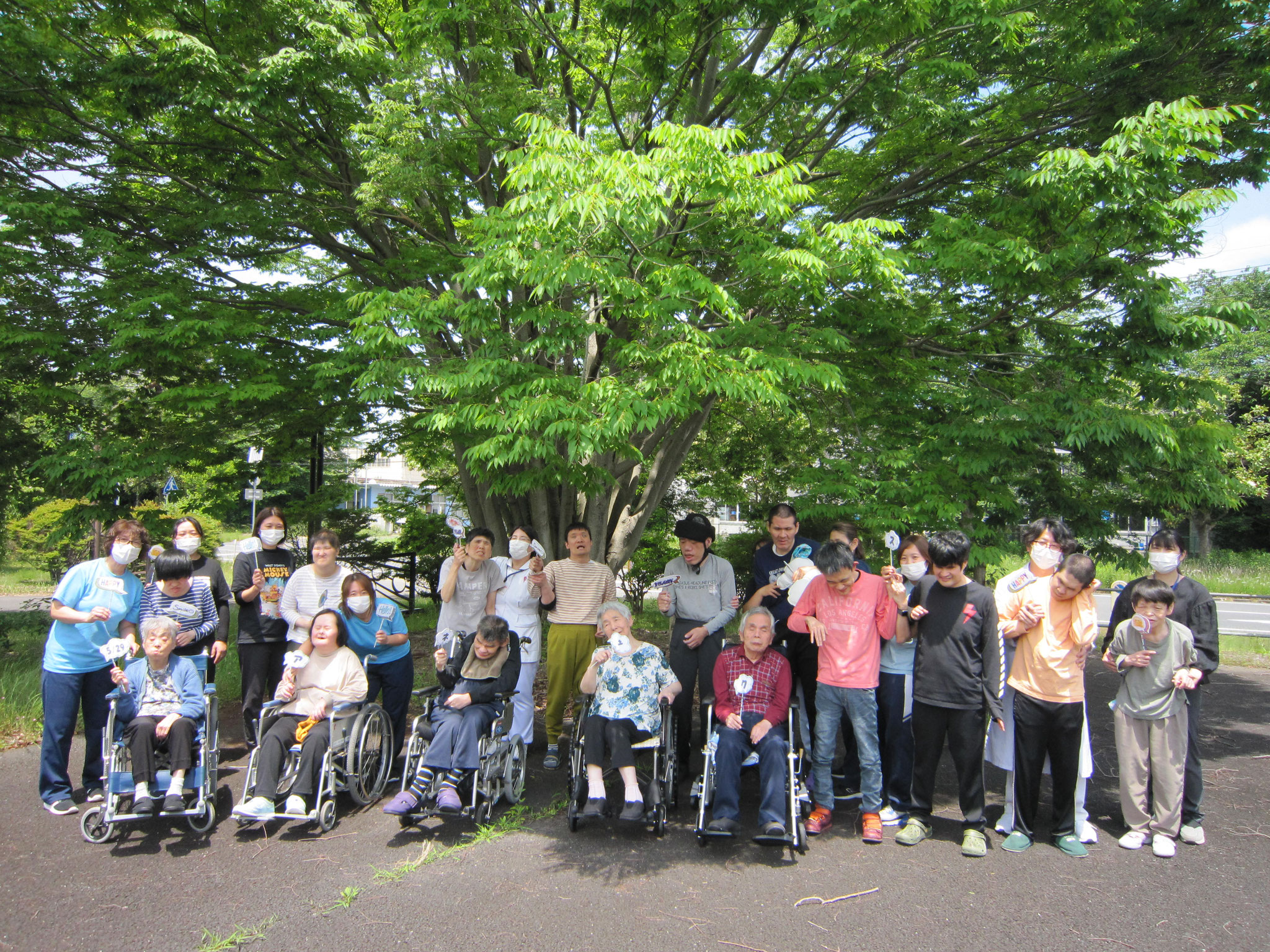 積み木ゲームや玉入れゲームなどみんなで楽しみました。楽しかったと利用者の皆さんから定評をいただきました。また、外では皆さんと写真も撮り良い思い出となりました。
