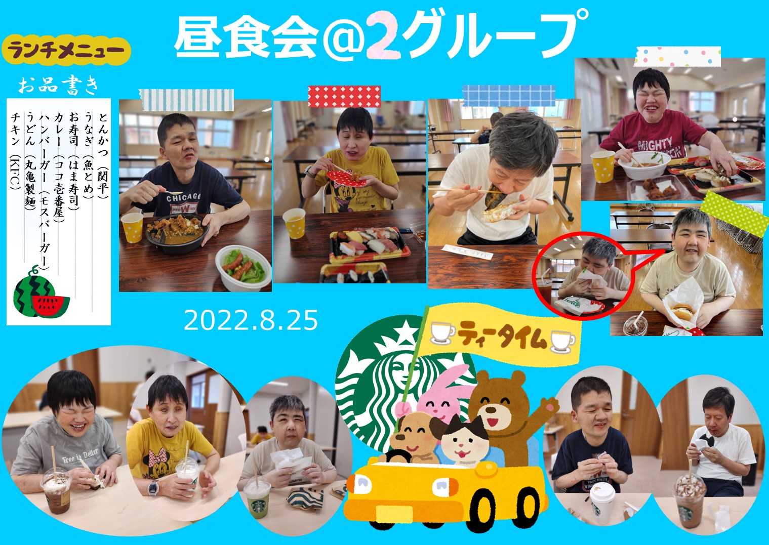 グループ毎に日にちを決め昼食会を開いています。各人好きなものを組み合わせていますが、とにかく美味しそうで羨ましいです。