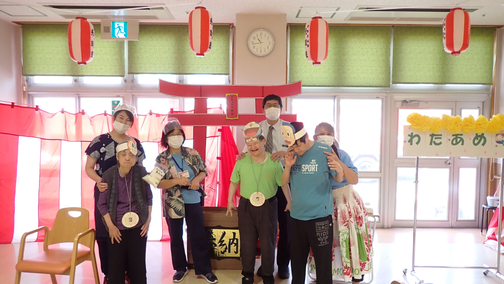 荘内で金魚すくい、的当て、千本引きを楽しみました。みんな童心にかえり笑顔・笑顔で楽しい一日でした。食事、デザートも美味しくいただきました。