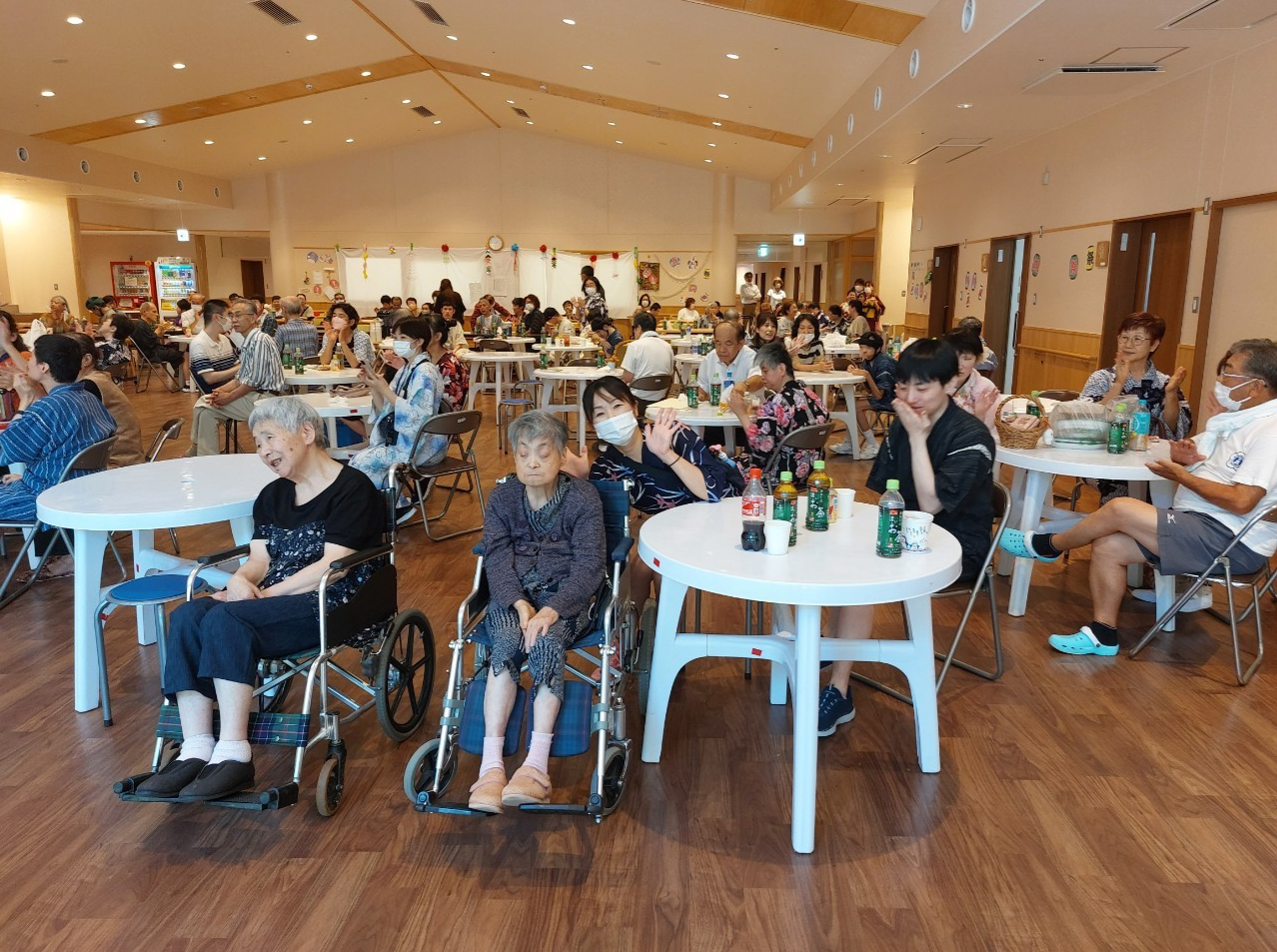 4年ぶりに保護者の皆様にもご来荘頂き光風荘・光風荘アネックス合同で納涼祭を開催することができました。キッチンカーも3台来てもらいお祭りの醍醐味である美味しい料理を提供して頂きました。カラオケ大会、くじ引きなど利用者の皆さんも楽しい一日を過ごせました。