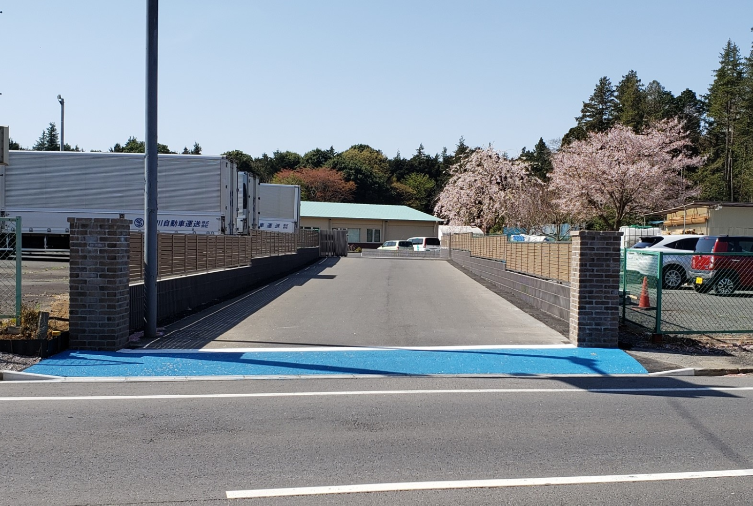 来荘される方に少しでも入口が分かりやすいよう、舗装を青くし併せて段差も解消しました。また、東屋についても完成に向けて作業を進めています。