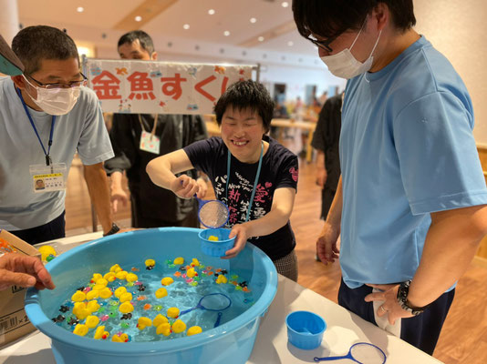 荘内で金魚すくい、的当て、千本引きを楽しみました。みんな童心にかえり笑顔・笑顔で楽しい一日でした。食事、デザートも美味しくいただきました。